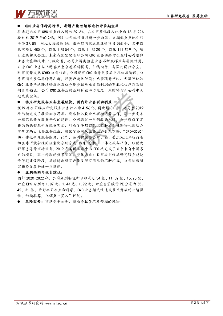 万联证券:康龙化成(300759)-2019年报点评:业绩增长超预期,看好后端业务潜力释放.pdf