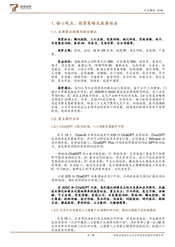 德邦证券:传媒互联网行业周报:ChatGPT上线iOS移动端,北京启动通用人工智能产业创新伙伴计划.pdf
