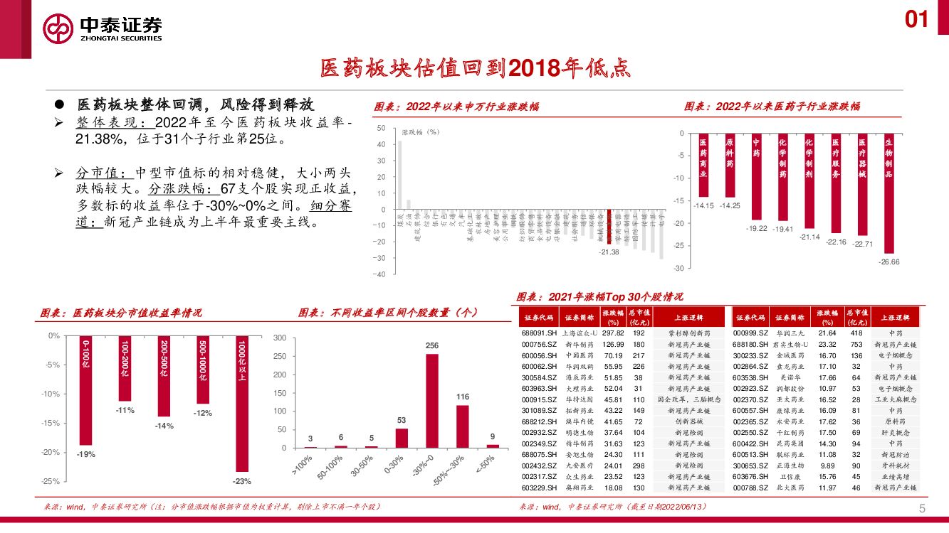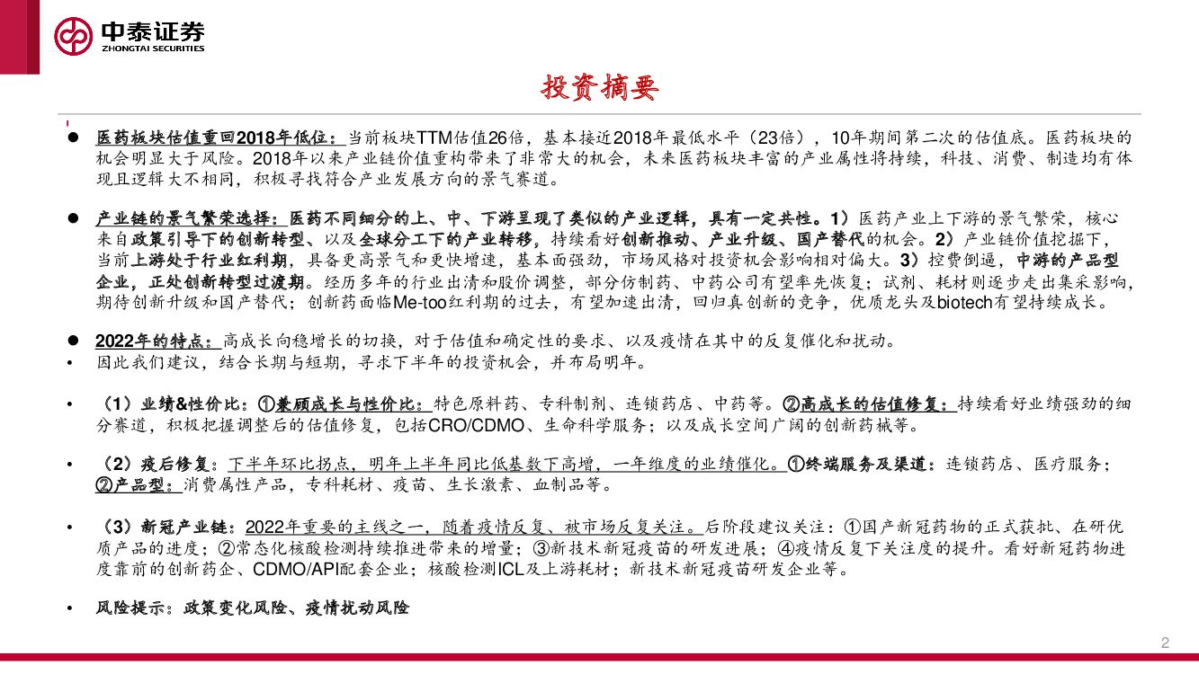 中泰证券:2022年下半年医药生物投资策略:估值回归后,产业链的景气繁荣选择.pdf