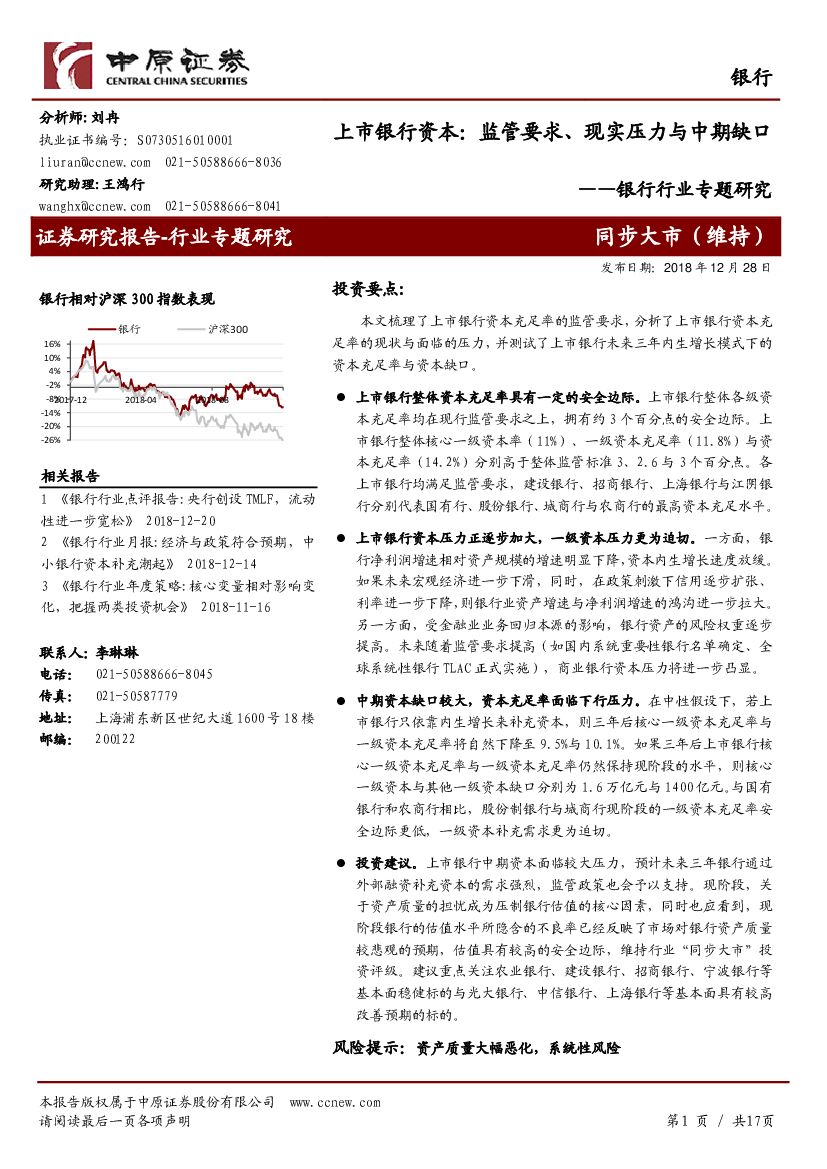 中原证券:银行行业专题研究:上市银行资本:监管要求、现实压力与中期缺口.pdf