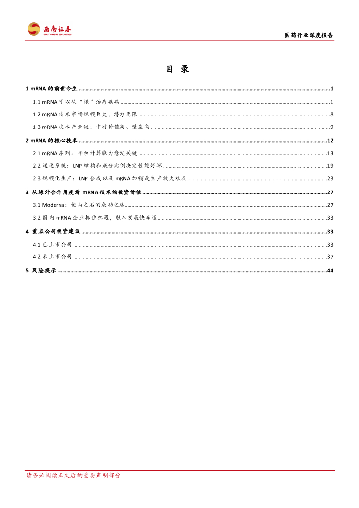 西南证券:医药行业深度报告:mRNA技术迎来快速发展期,未来前景广阔.pdf