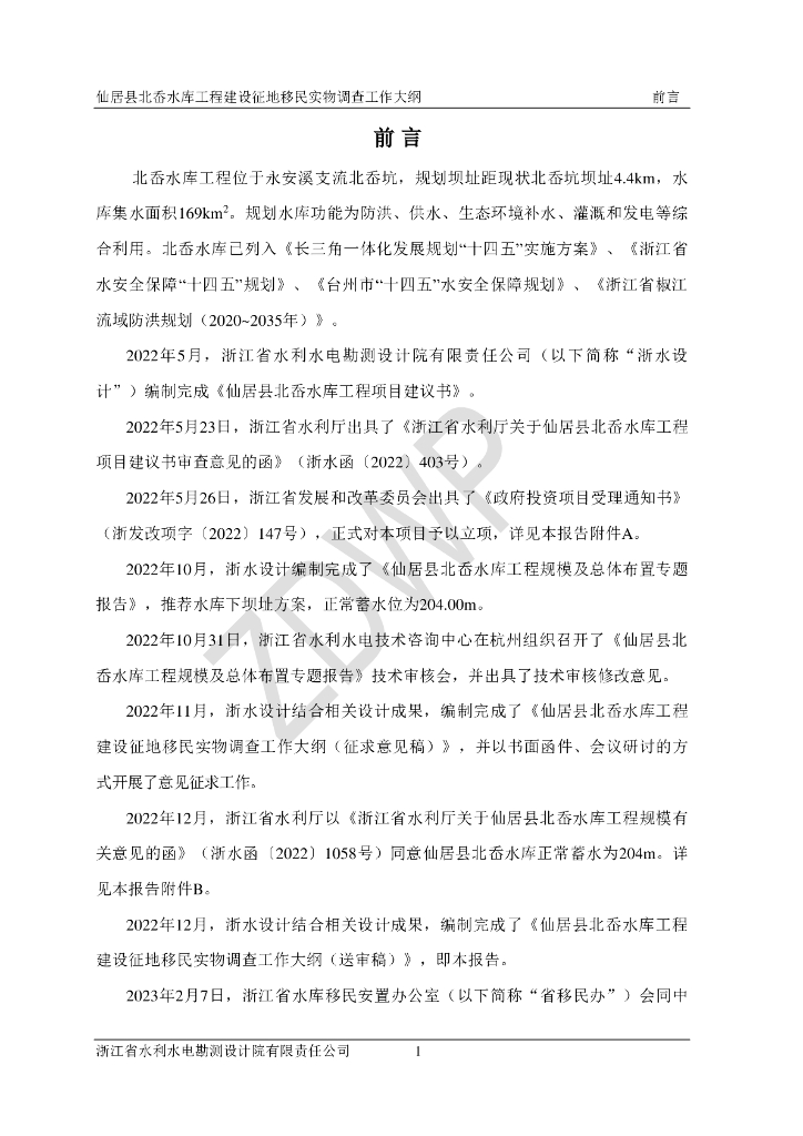 仙居县北岙水库工程建设征地移民实物调查工作大纲(报批稿).pdf