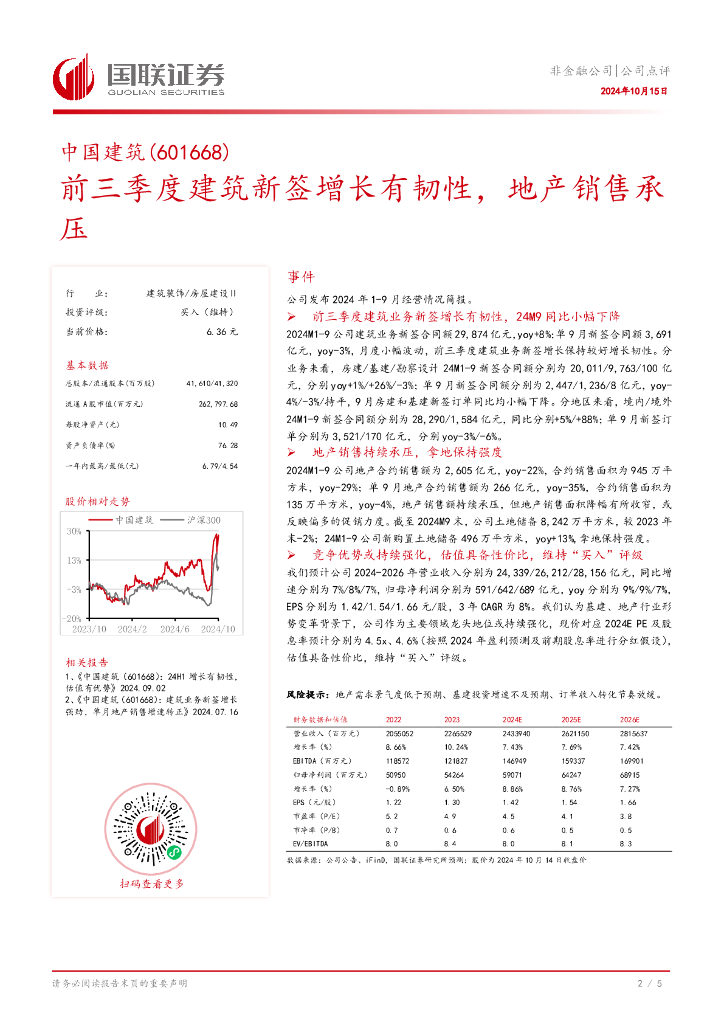国联证券:中国建筑(601668)-前三季度建筑新签增长有韧性,地产销售承压.pdf