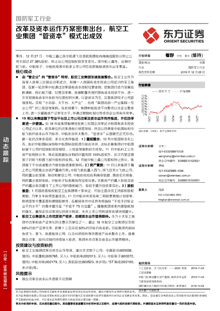 东方证券:国防军工行业动态跟踪:改革及资本运作方案密集出台,航空工业集团“管资本”模式出成效.pdf