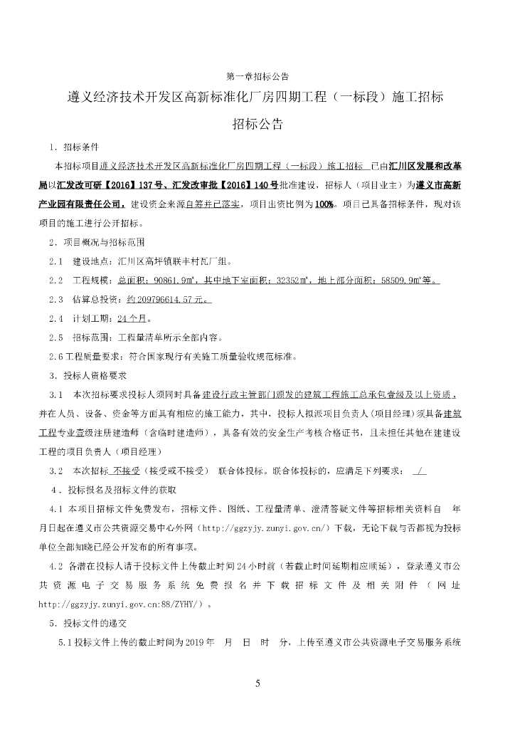 遵义经济技术开发区高新标准化厂房四期工程(一标段)施工招标文件.doc