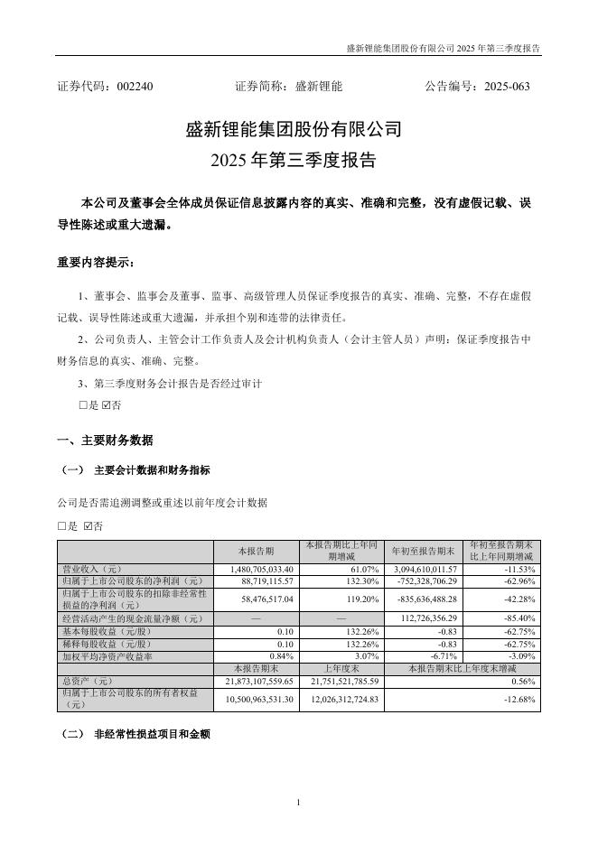 002240-盛新锂能:2025年三季度报告.pdf
