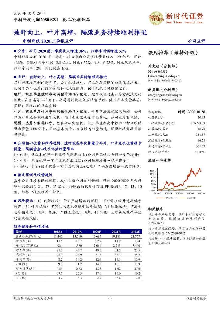 新时代证券:中材科技2020三季报点评:玻纤向上,叶片高增,隔膜业务持续顺利推进.pdf