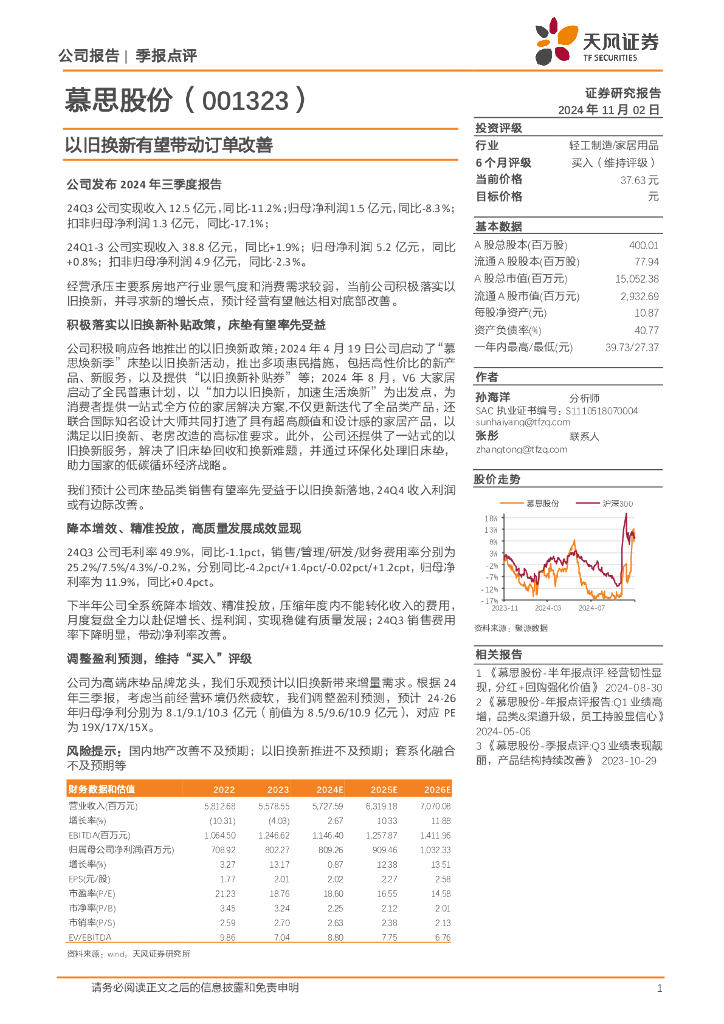 天风证券:慕思股份(001323)-以旧换新有望带动订单改善.pdf