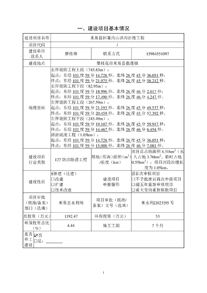 米易县回箐沟山洪沟治理工程建设项目环境影响报告表(生态影响类).pdf