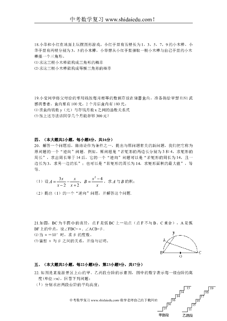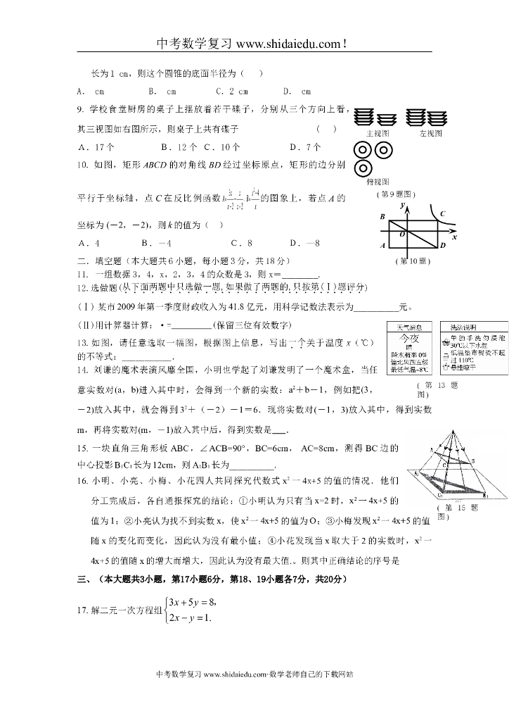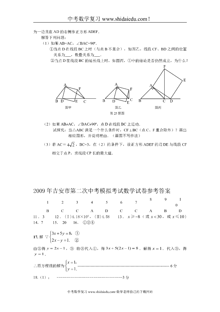 江西省吉安市第二次中考模拟考试数学试题及标准答案.doc