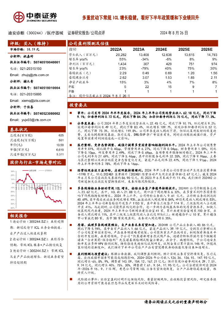 中泰证券:迪安诊断(300244)-多重扰动下常规ICL增长稳健,看好下半年政策缓和下业绩回升.pdf