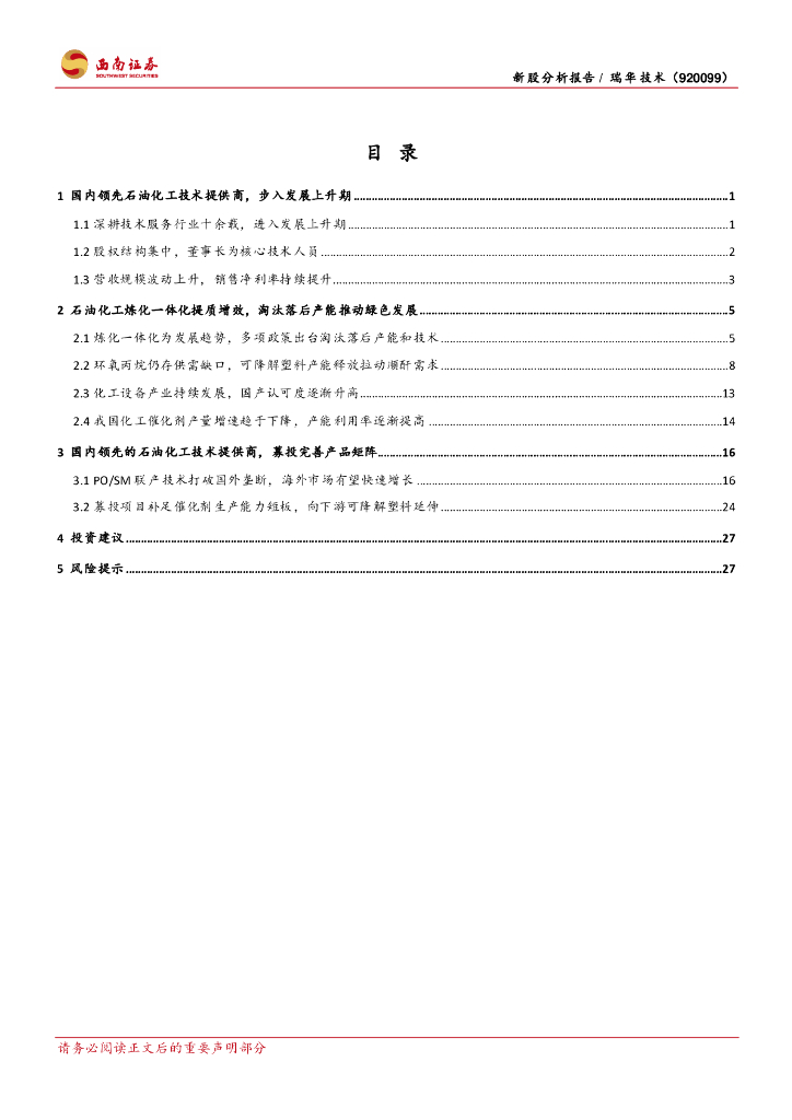 西南证券:瑞华技术(920099)-国内领先的石油化工技术提供商,多维度增长可期.pdf