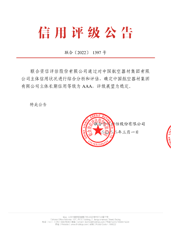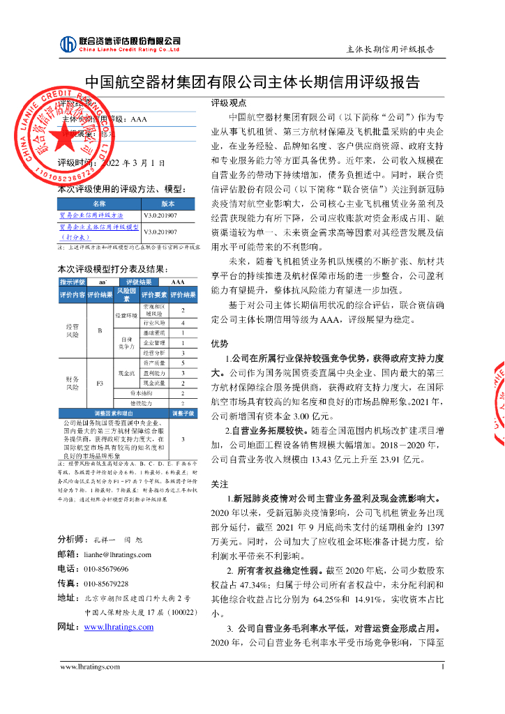 联合资信:中国航空器材集团有限公司2022年度主体长期信用评级报告.pdf