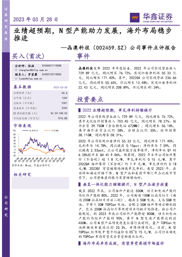 华鑫证券:晶澳科技(002459)-公司事件点评报告:业绩超预期,N型产能助力发展,海外布局稳步推进.pdf