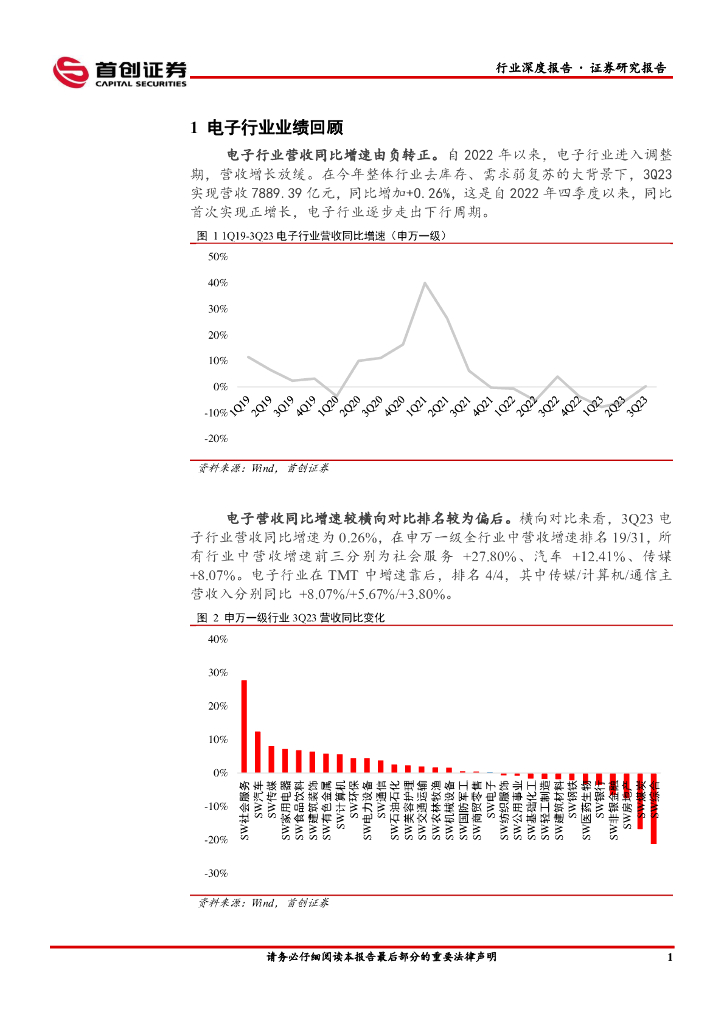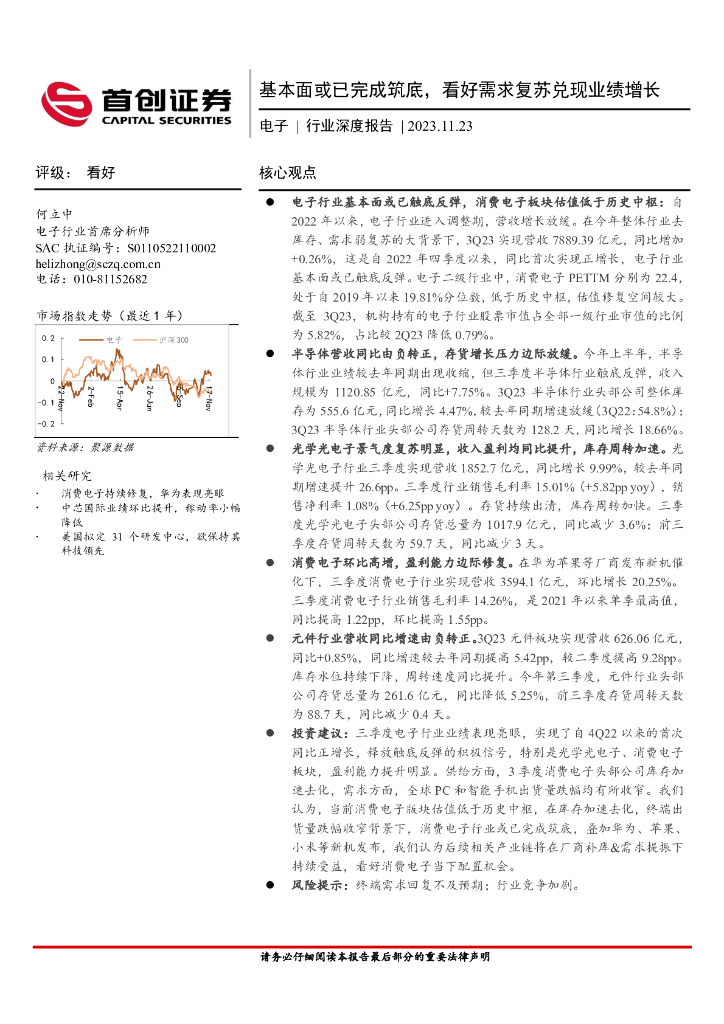 首创证券:电子行业深度报告:基本面或已完成筑底,看好需求复苏兑现业绩增长.pdf