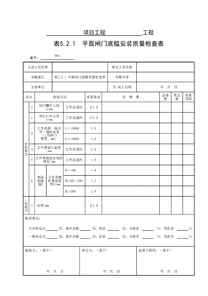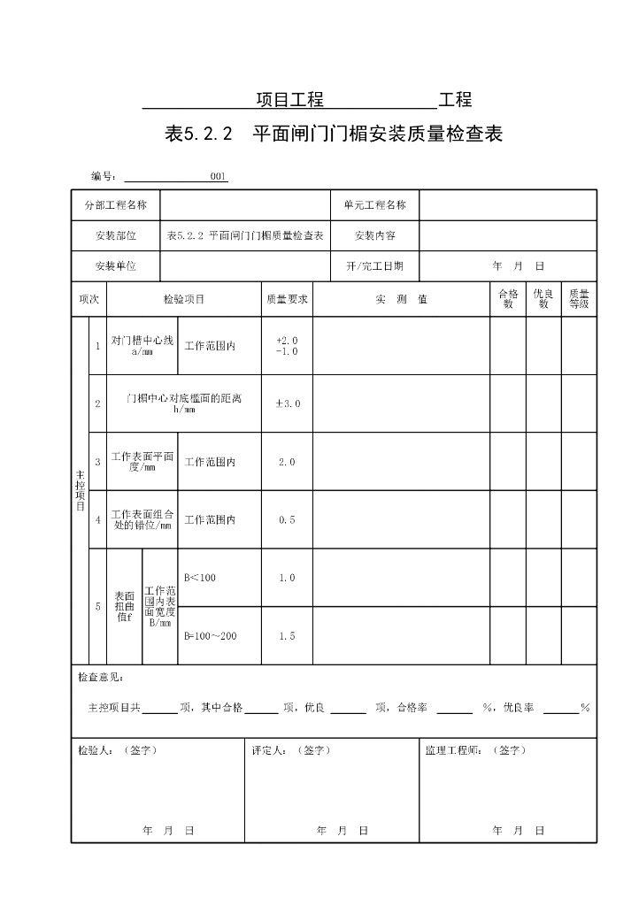 水利平面闸门埋件安装质量验收评定表18P.pdf