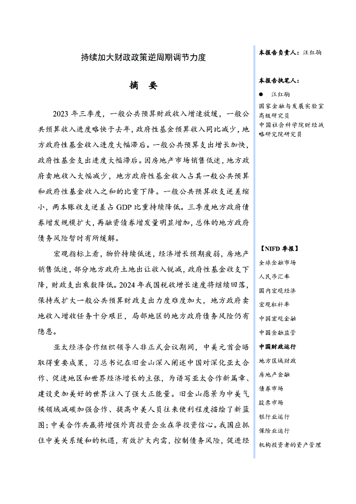NIFD季报:持续加大财政政策逆周期调节力度——2023Q3中国财政运行报告.pdf