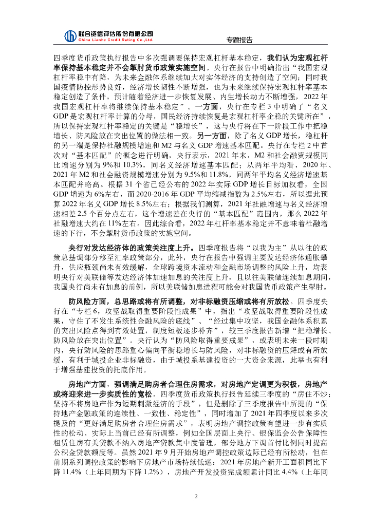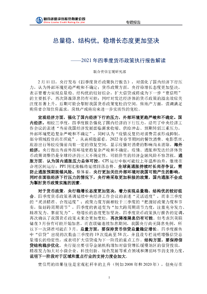 联合资信:总量稳、结构优,稳增长态度更加坚决-四季度货币政策执行报告解读.doc