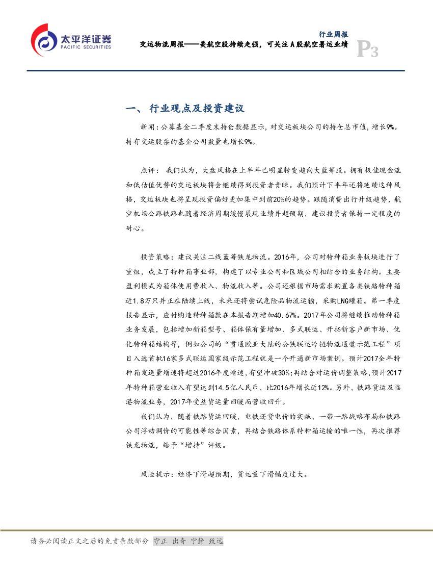 太平洋证券:交运物流周报:二季度公募看好交运,可关注二线蓝筹交运股.pdf