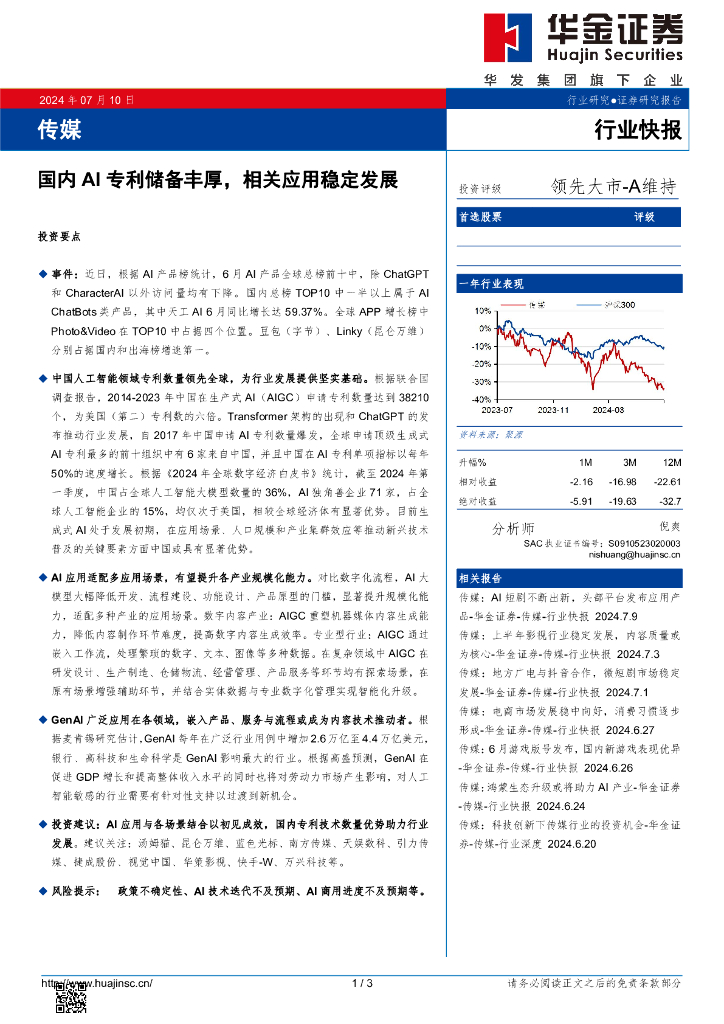 华金证券:传媒:国内AI专利储备丰厚,相关应用稳定发展.pdf