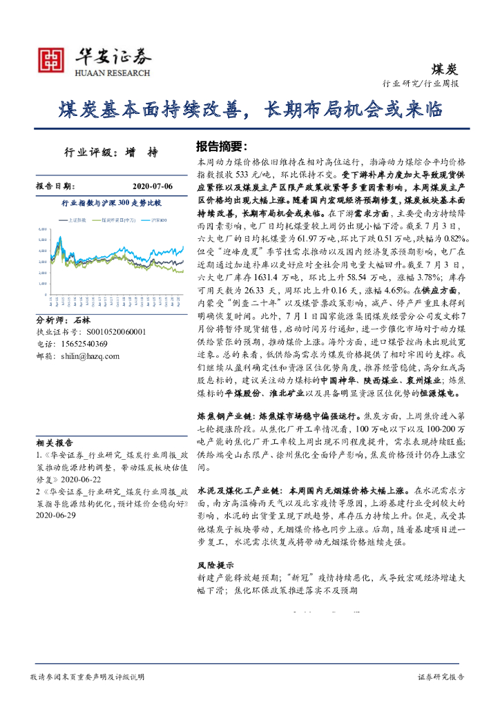 华安证券:煤炭行业周报:煤炭基本面持续改善,长期布局机会或来临.pdf