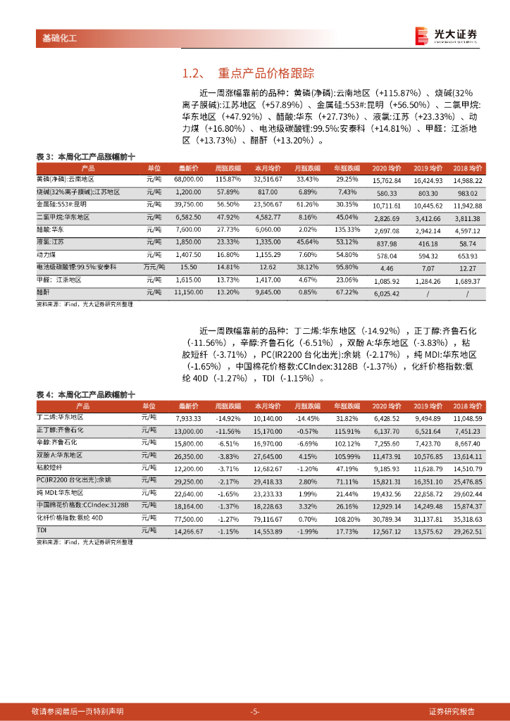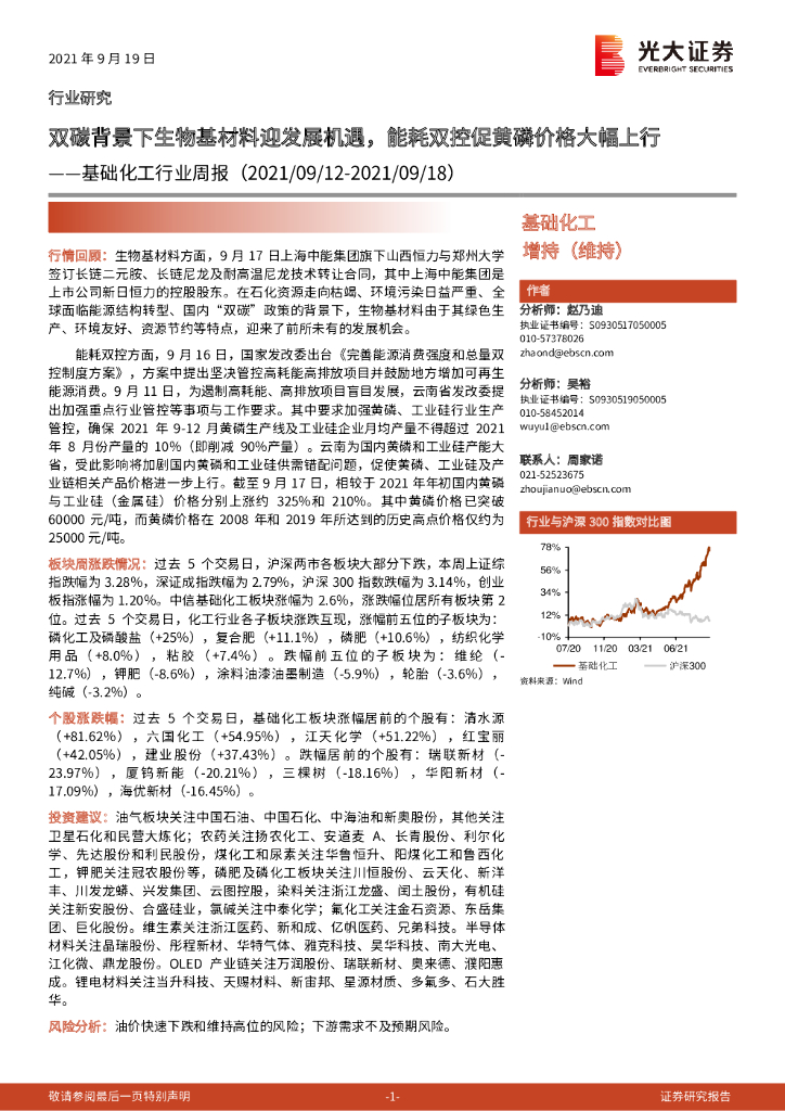 光大证券:基础化工行业周报:双碳背景下生物基材料迎发展机遇,能耗双控促黄磷价格大幅上行.pdf