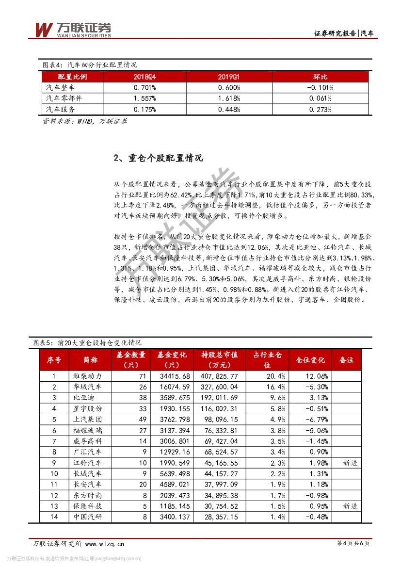 万联证券:汽车行业公募基金2019Q1持仓分析:持仓比例逐季提升,整车配置变动较大.pdf