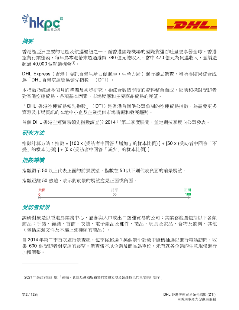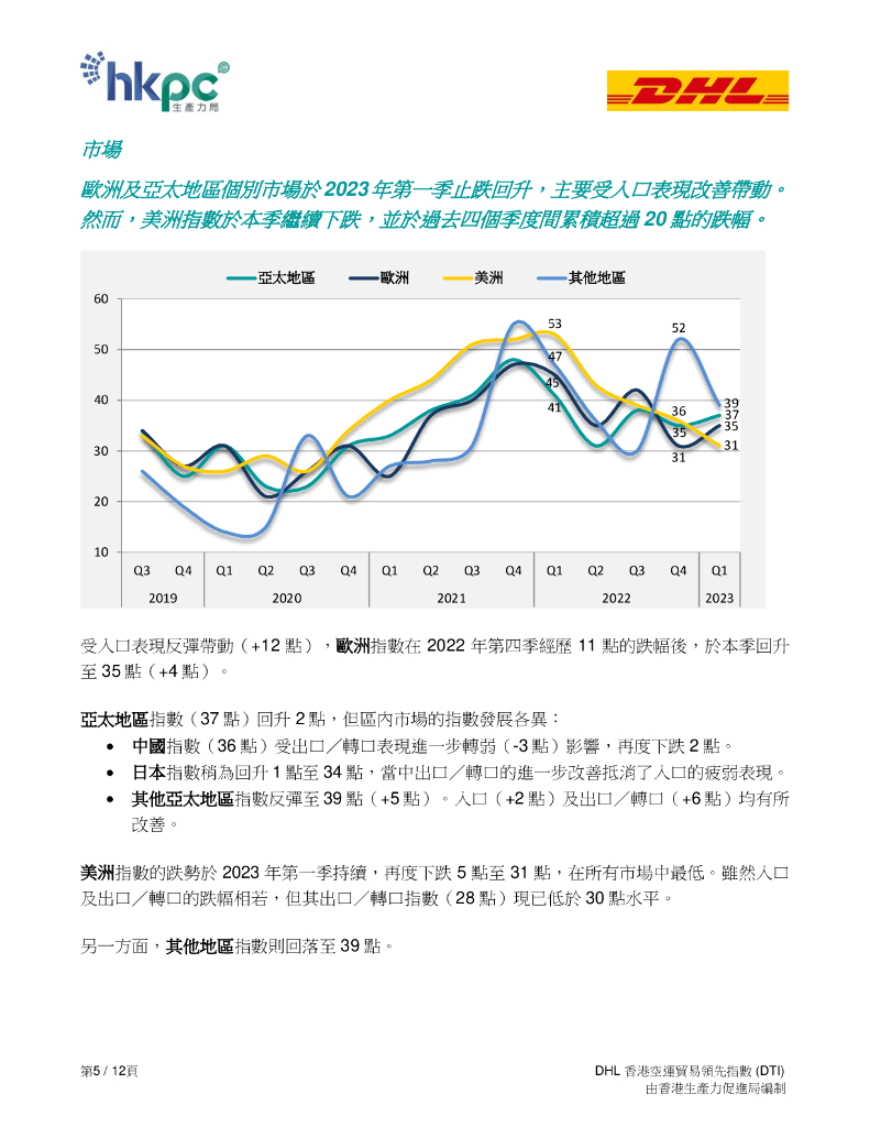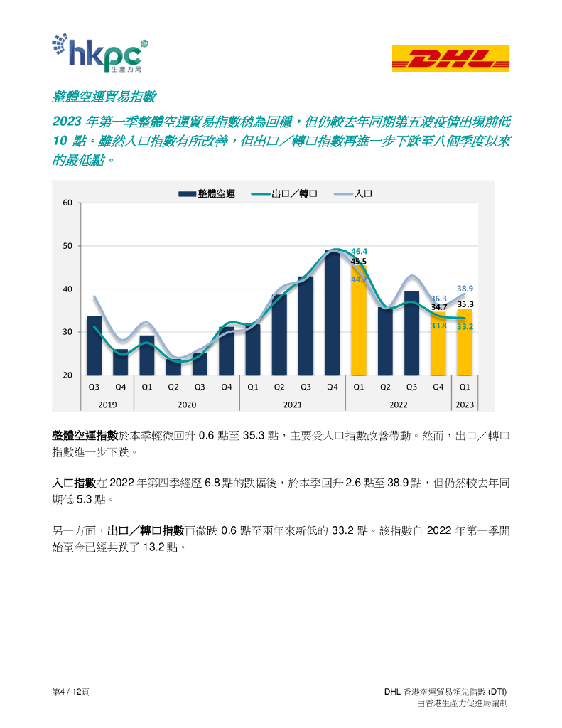 香港生产力促进局:2023年第一季度DHL香港空运贸易领先指数(DTI)报告(繁体版).pdf