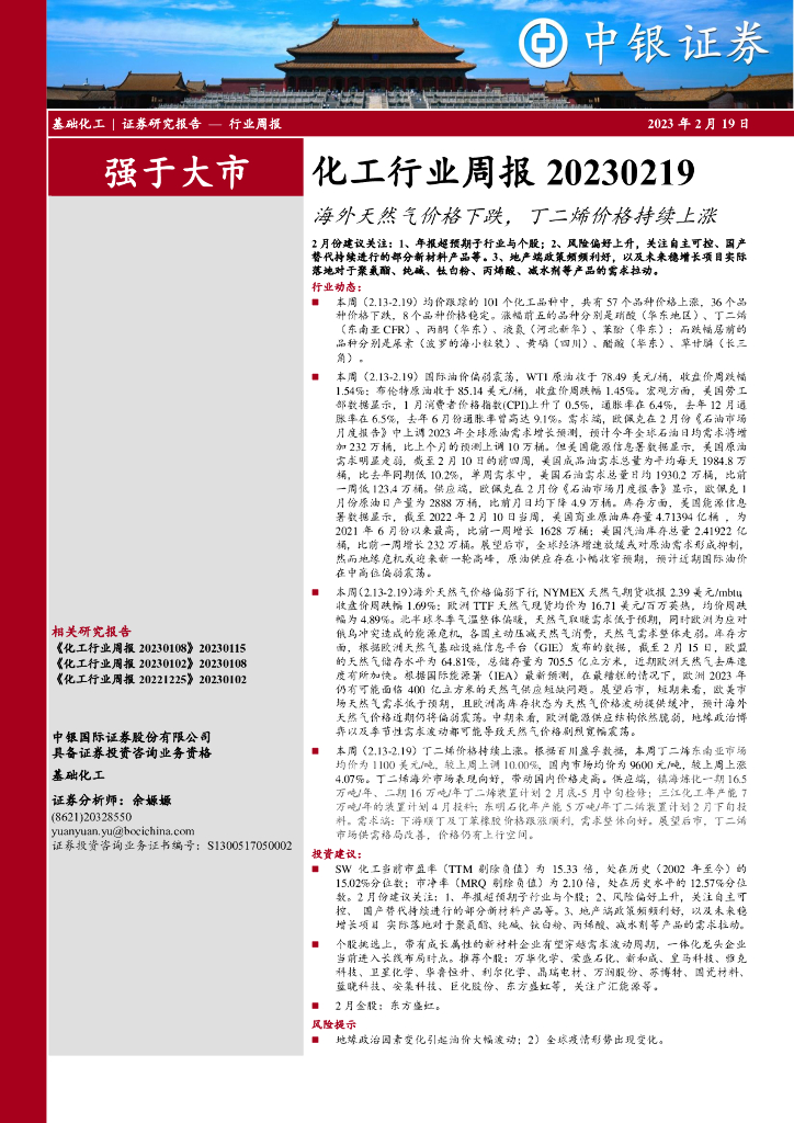 中银证券:化工行业周报:海外天然气价格下跌,丁二烯价格持续上涨.pdf