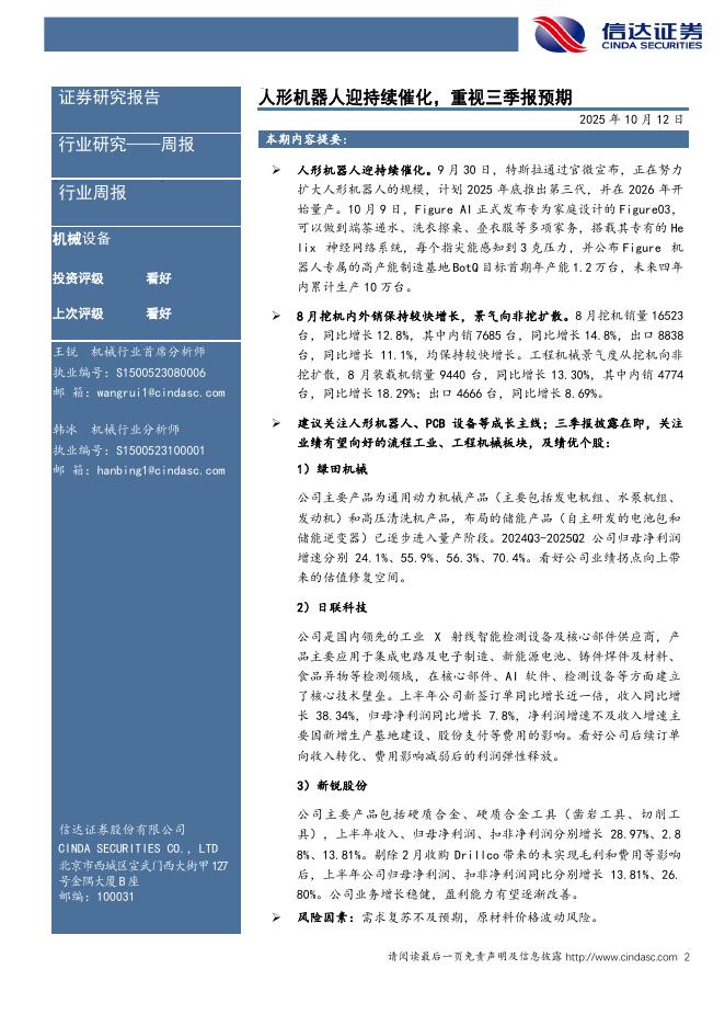 信达证券:机械设备行业周报:人形机器人迎持续催化,重视三季报预期.pdf