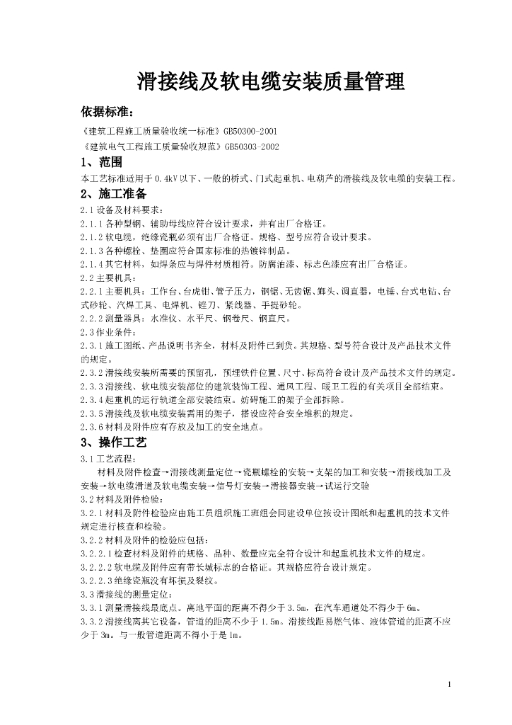 滑接线及软电缆安装质量管理.doc
