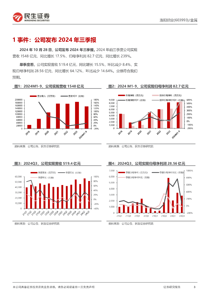 民生证券:洛阳钼业(603993)-2024年三季报深度点评:产量持续超预期,期待刚果金矿山持续放量.pdf