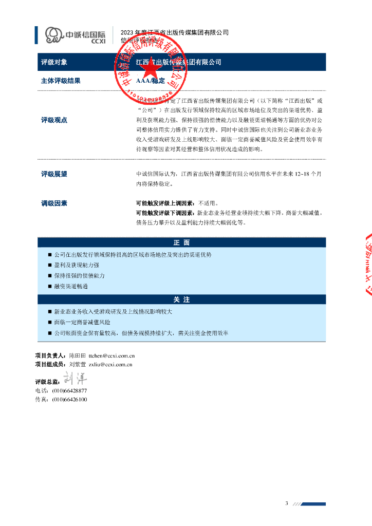 中诚信:2023年度江西省出版传媒集团有限公司信用评级报告.pdf