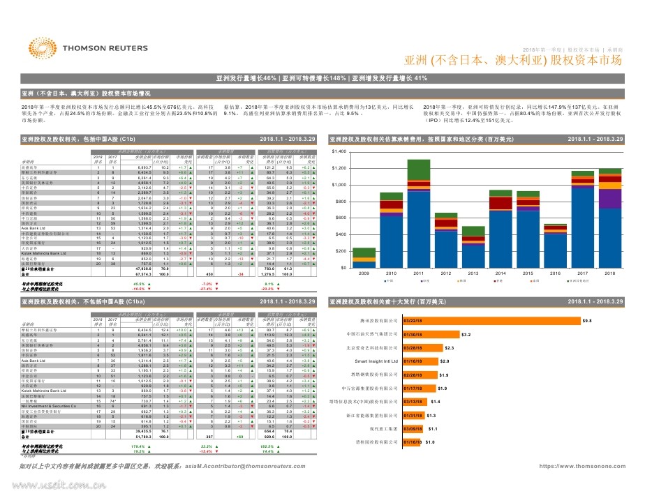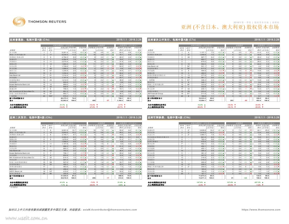 汤森路透:2018年第一季度亚洲和中国股权资本市场财务顾问报告.pdf
