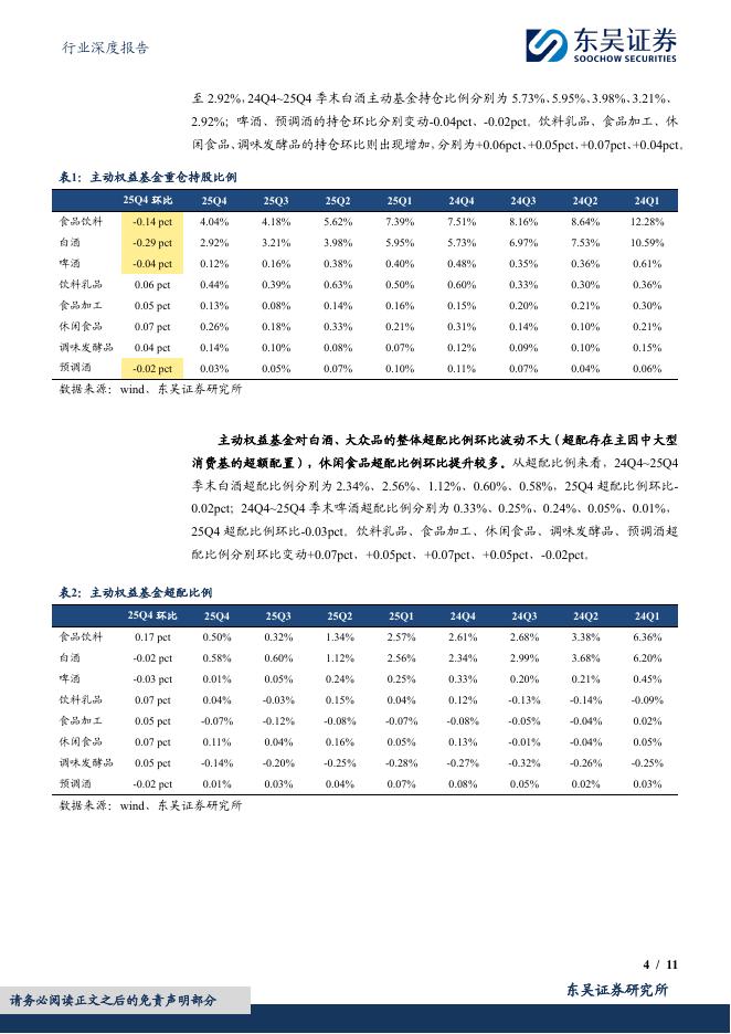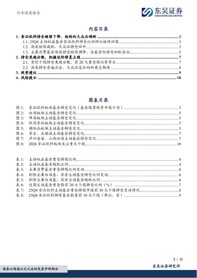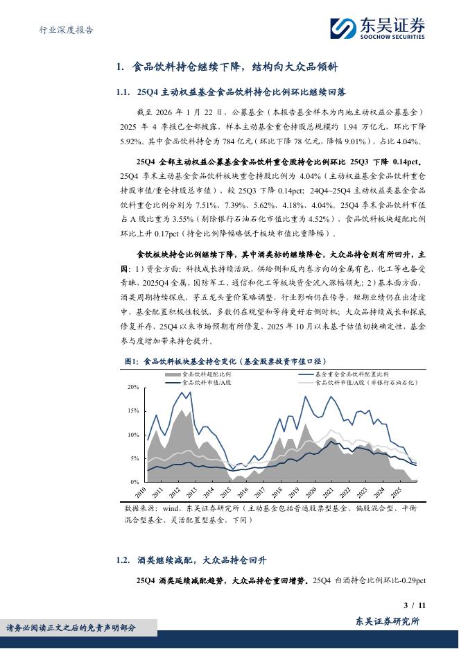 东吴证券:食品饮料行业深度报告:2025Q4基金食品饮料持仓分析:持仓继续下降,结构向大众品倾斜.pdf