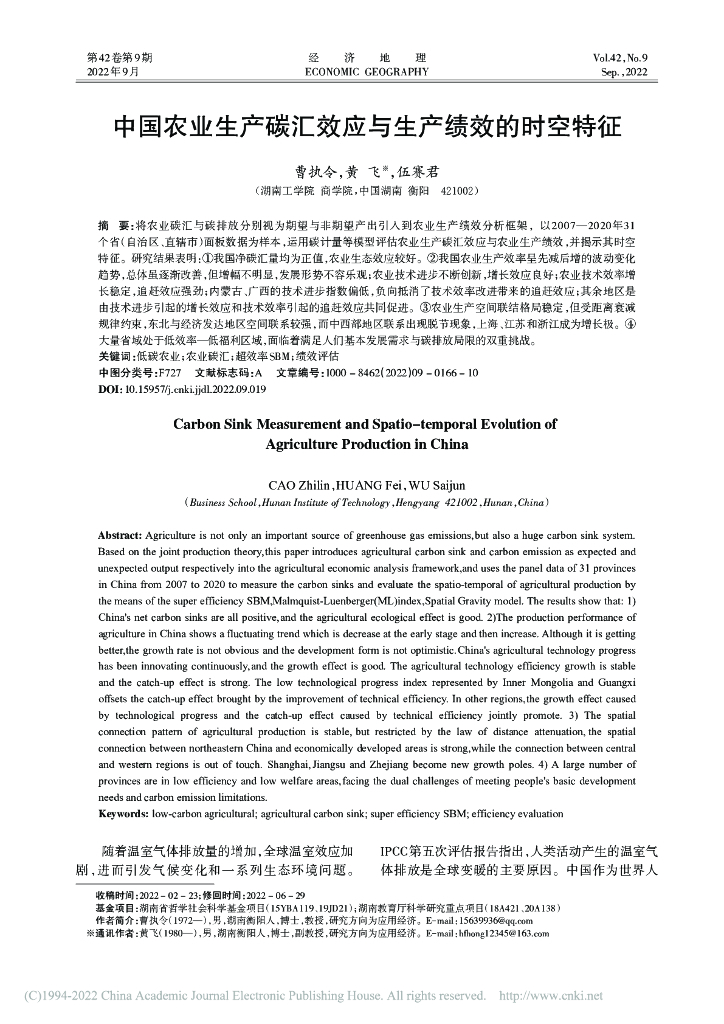 中国农业生产碳汇效应与生产绩效的时空特征.pdf
