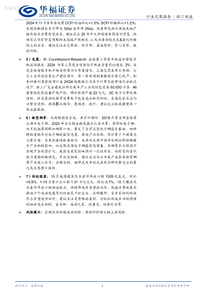 华福证券:轻工制造行业定期报告:看好顺周期景气复苏,包装纸价延续小幅提涨.pdf