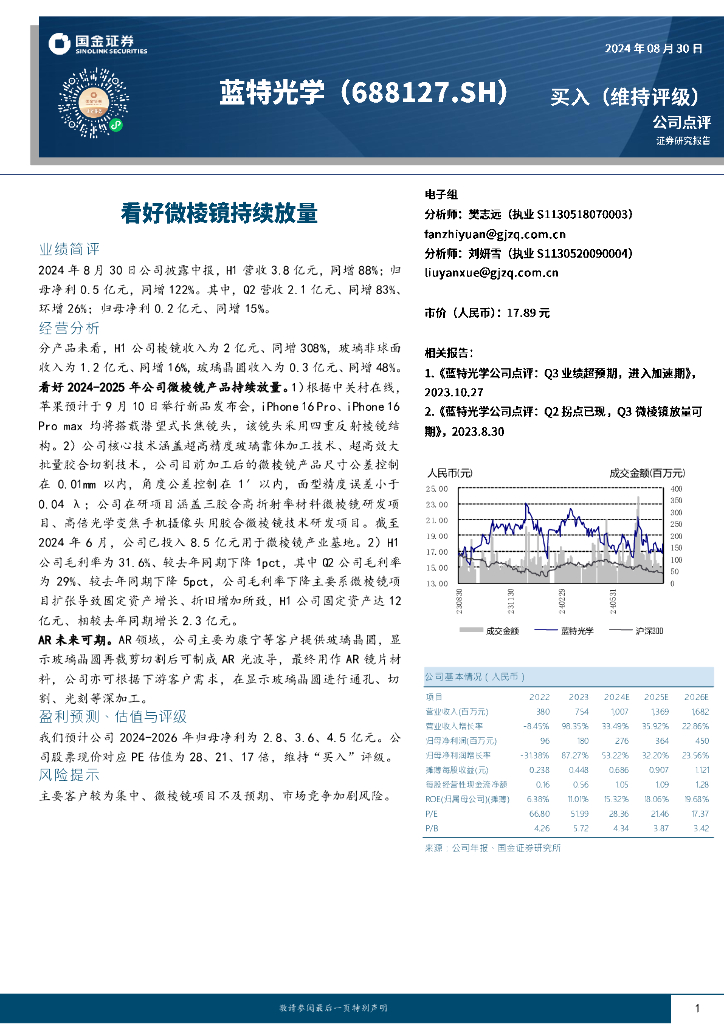 国金证券:蓝特光学(688127)-看好微棱镜持续放量.pdf