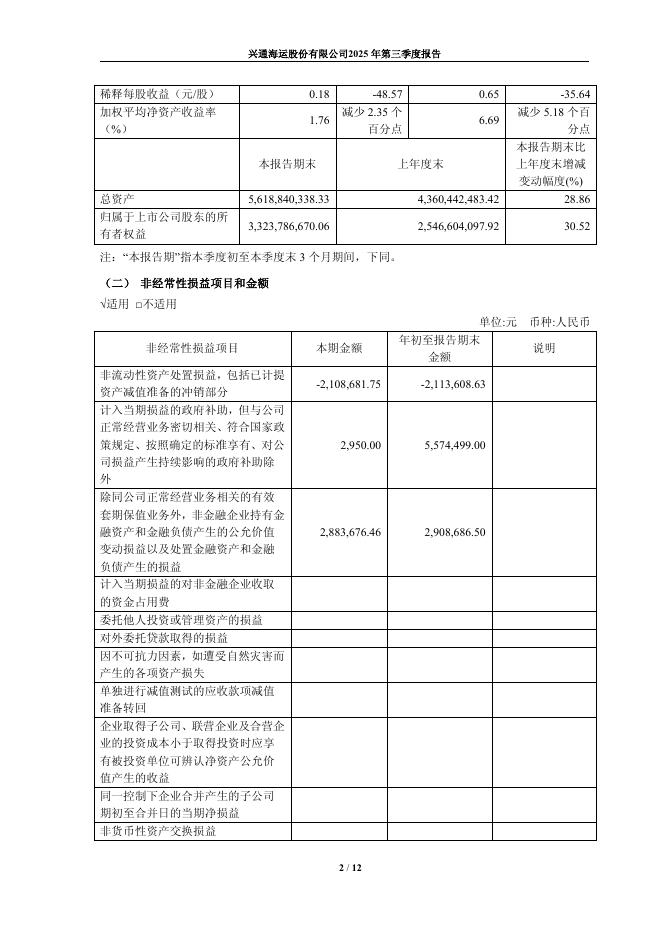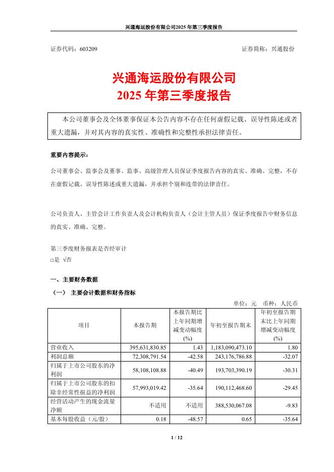 603209-兴通股份:兴通海运股份有限公司2025年第三季度报告.pdf