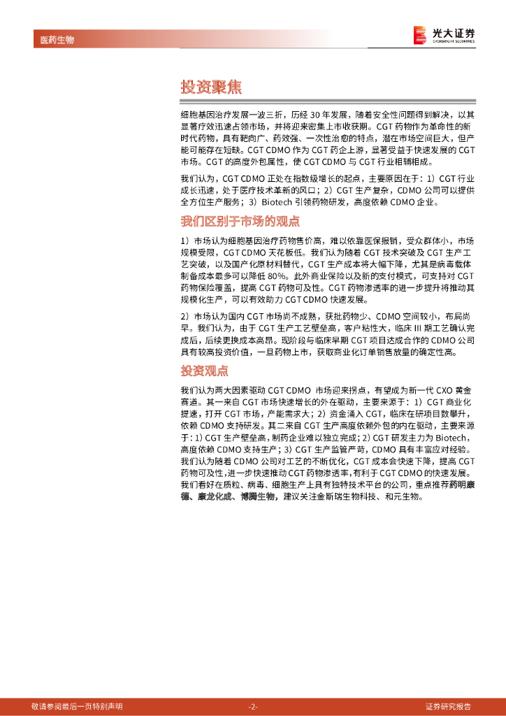 光大证券:医药生物:细胞基因治疗CDMO行业深度报告:厚积薄发,搭乘新世代药物发展浪潮.pdf