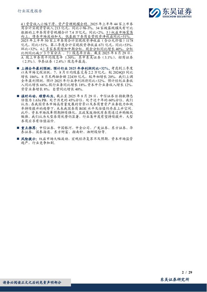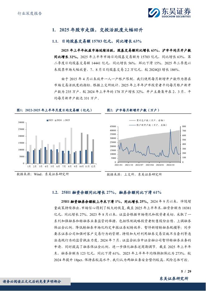 东吴证券:证券行业2025年中报总结:资本市场持续回暖,上半年扣非净利润同比+51%,上调全年盈利预测.pdf