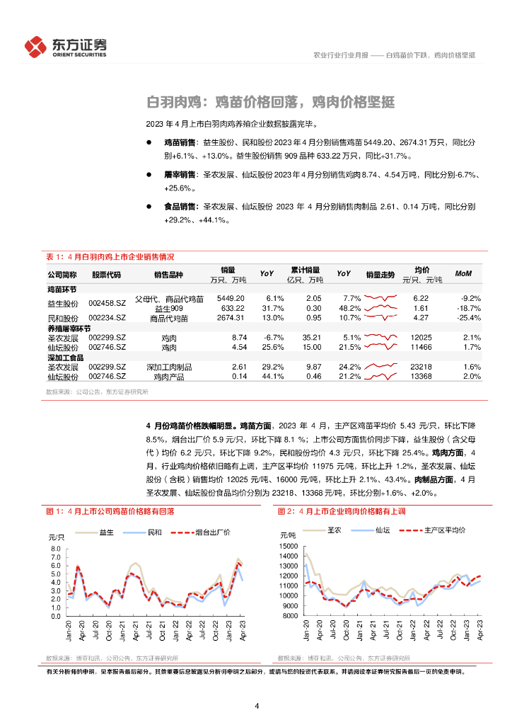 东方证券:4月家禽养殖销售跟踪:白鸡苗价下跌,鸡肉价格坚挺.pdf