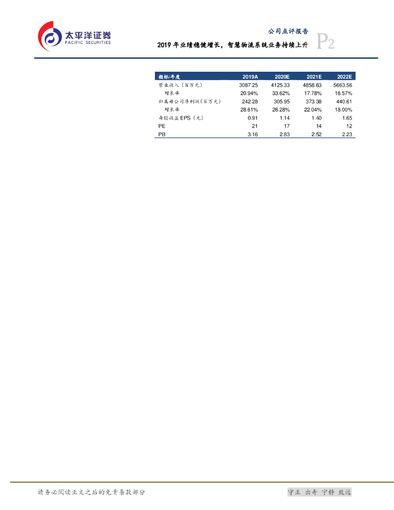 太平洋证券:诺力股份(603611)-2019年业绩稳健增长,智慧物流系统业务持续上升.pdf