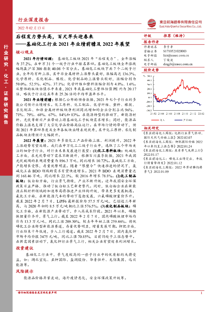 东亚前海证券:基础化工行业2021年业绩前瞻及2022年展望:后程发力势头高,百尺竿头迎春来.pdf