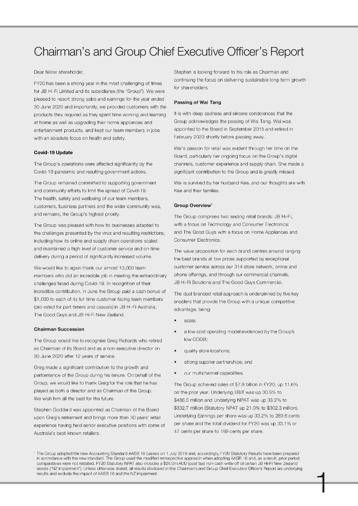 JB Hi-Fi Limited(JBH)2020财年年度报告(英文版).pdf