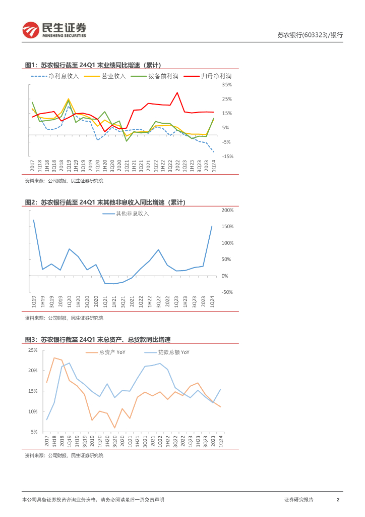 民生证券:苏农银行(603323)-2023年年报&2024年一季报点评:非息提振营收,城区战略推进.pdf