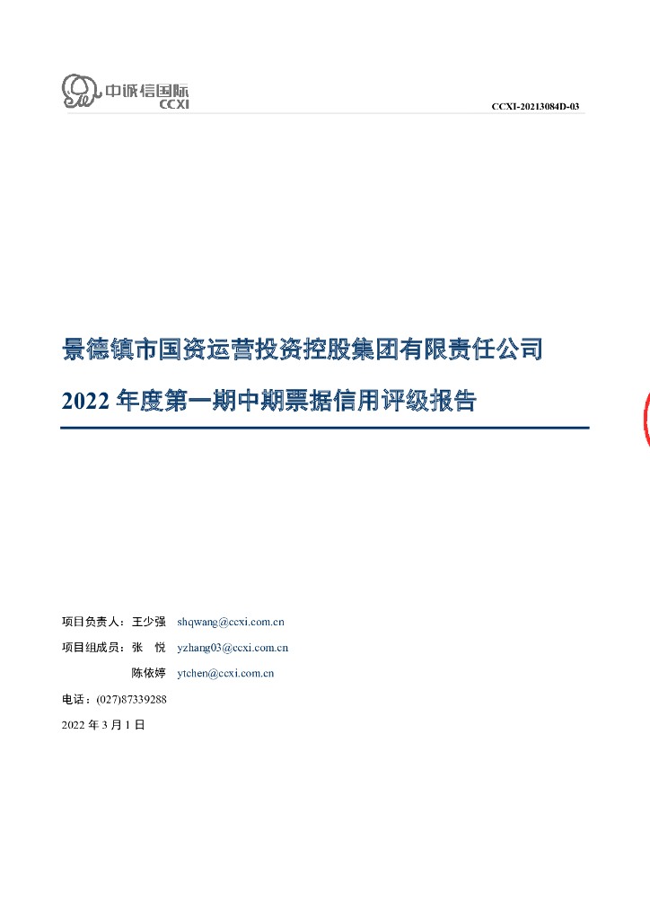联合资信:景德镇市国资运营投资控股集团有限责任公司2022年度第一期中期票据信用评级报告.pdf