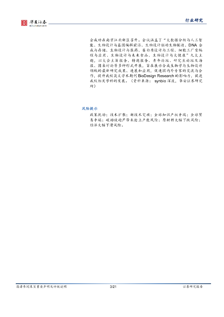 华安证券:基础化工行业周报:合成生物学周报:聚乳酸和聚乙醇酸新国标正式实施,陕西省将重点发展合成生物.pdf