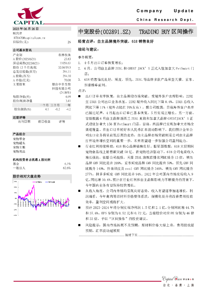 群益证券:中宠股份(002891)-经营点评:自主品牌境外突破,618销售良好.pdf