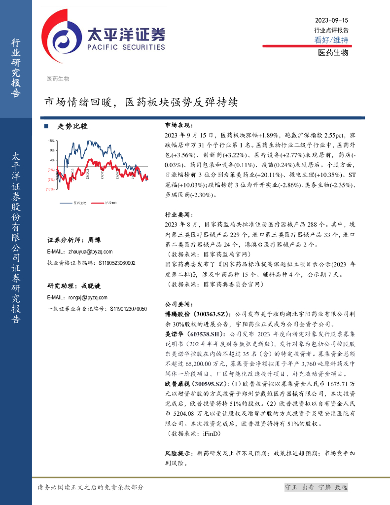 太平洋证券:医药生物:市场情绪回暖,医药板块强势反弹持续.pdf